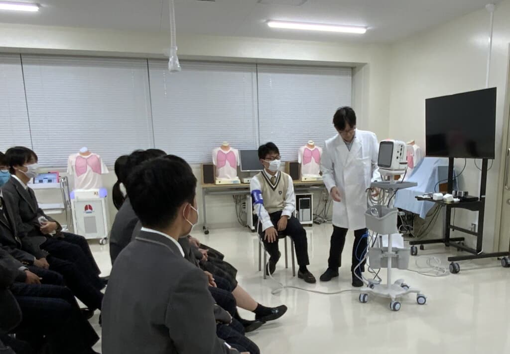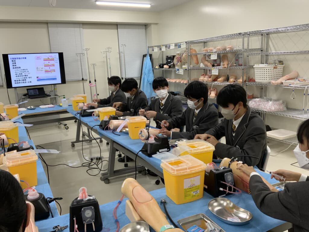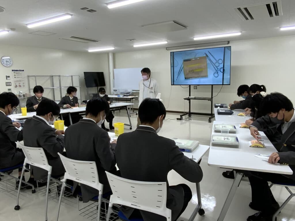 徳島市立高校1年生34名がスキルス・ラボで医学体験実習(縫合・聴診・バイタルサイン測定・採血)を行いました。